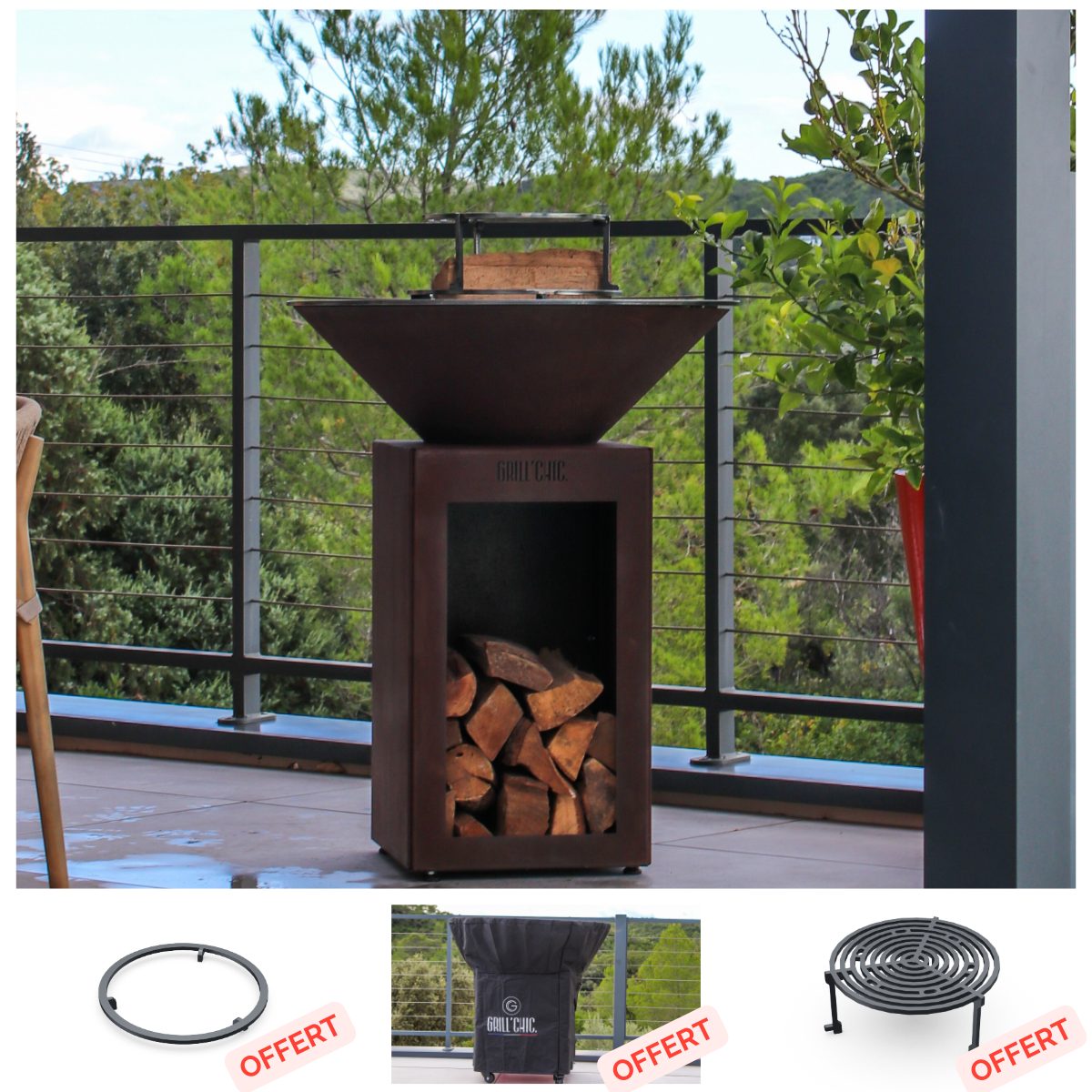 Pack Black Friday Brasero Auvergnat Corten Bois Rond 62×76 cm – Simple Cuve