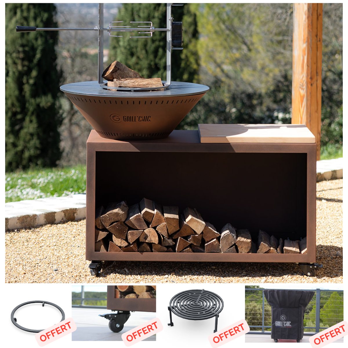 Pack Black Friday Brasero Traditionnel Acier Thermolaqué Ø83×90 Imitation Corten – Double Cuve